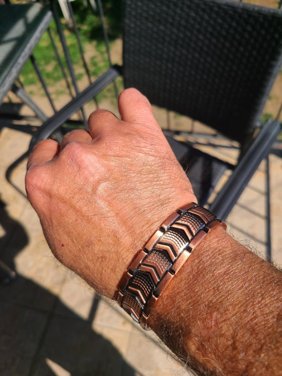 Visible reliefis possible. The vitalFlow… Magnetic copperBracelet for Men works to reduce swelling, ease jointdiscomfort, and restore natural movement - from stiffness tostrength, naturally.